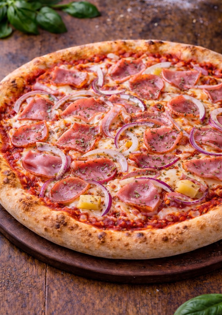 Onions, beef, ham, pepperoni, cocktail sausages, extra cheese.